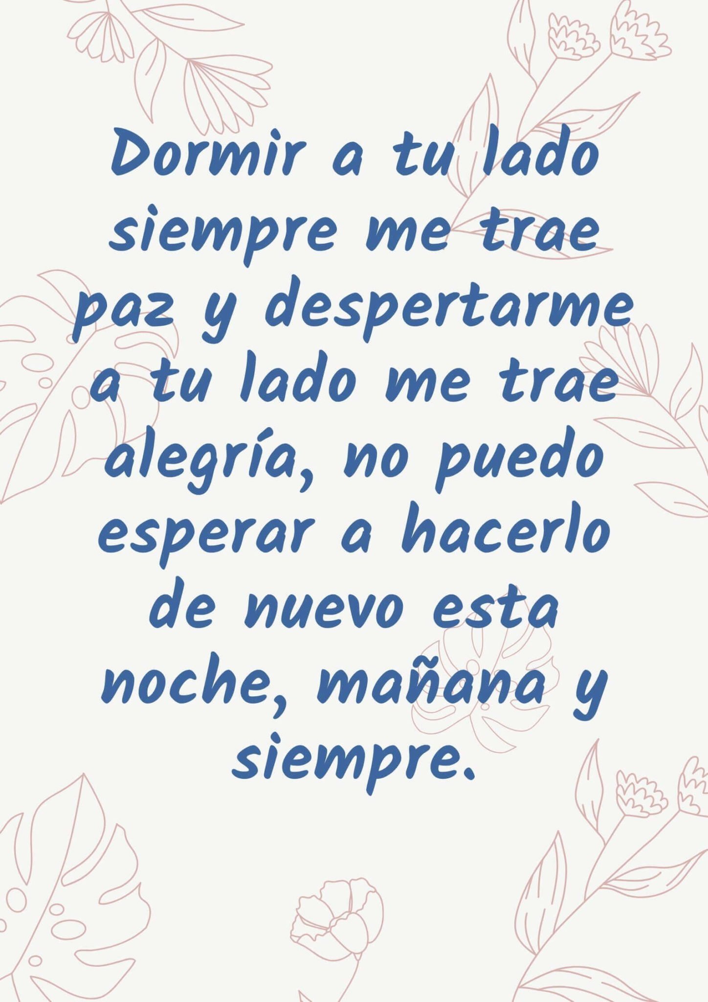 «Dormir a tu lado siempre me trae paz y despertarme a tu lado me trae alegría, no puedo esperar a hacerlo de nuevo esta noche, mañana y siempre.»